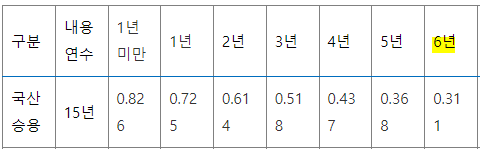 2. 차량 잔가율을 확인합니다. 21년 기준으로 15년식 국산 승용은 0.311입니다.