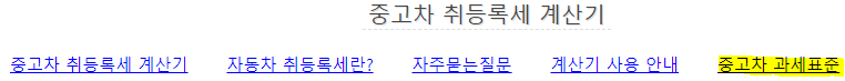 1. 사이트 상단의 중고차 과세표준 메뉴를 선택합니다.